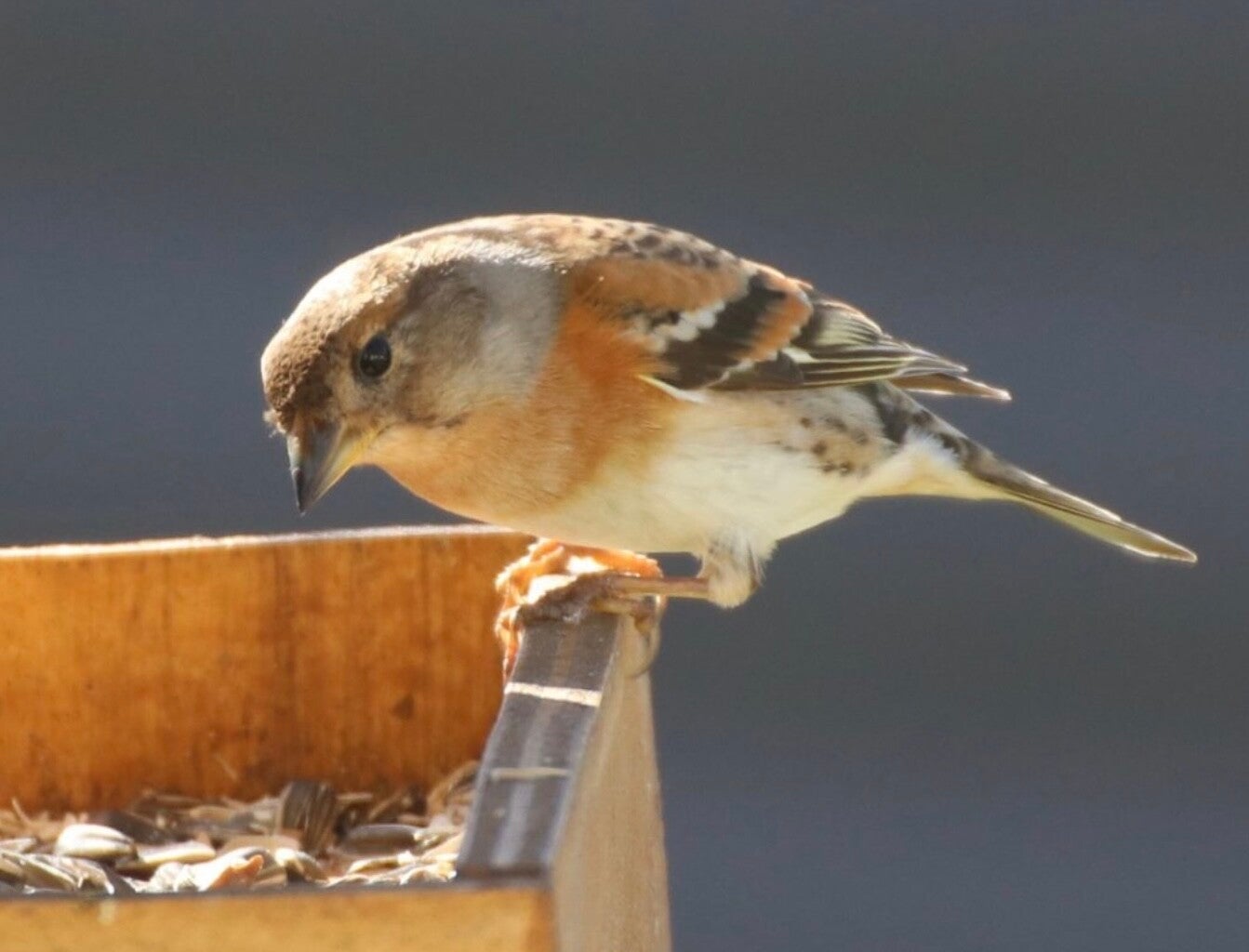 C'est l'espèce la plus nordique du genre, un bel oiseau au plumage orangé que l’on observe en hiver, comme on peut le voir en hivernage chez nous, comportements proches de ceux du Pinson des arbres, principalement granivore sauf en période de reproduction ou il mange des insectes.
